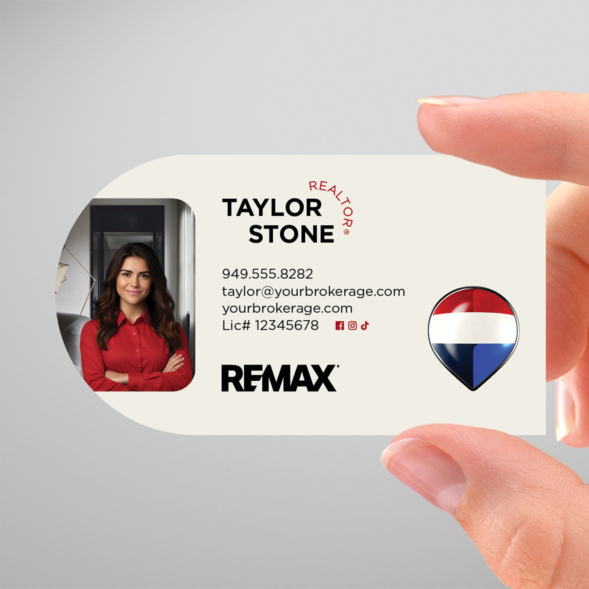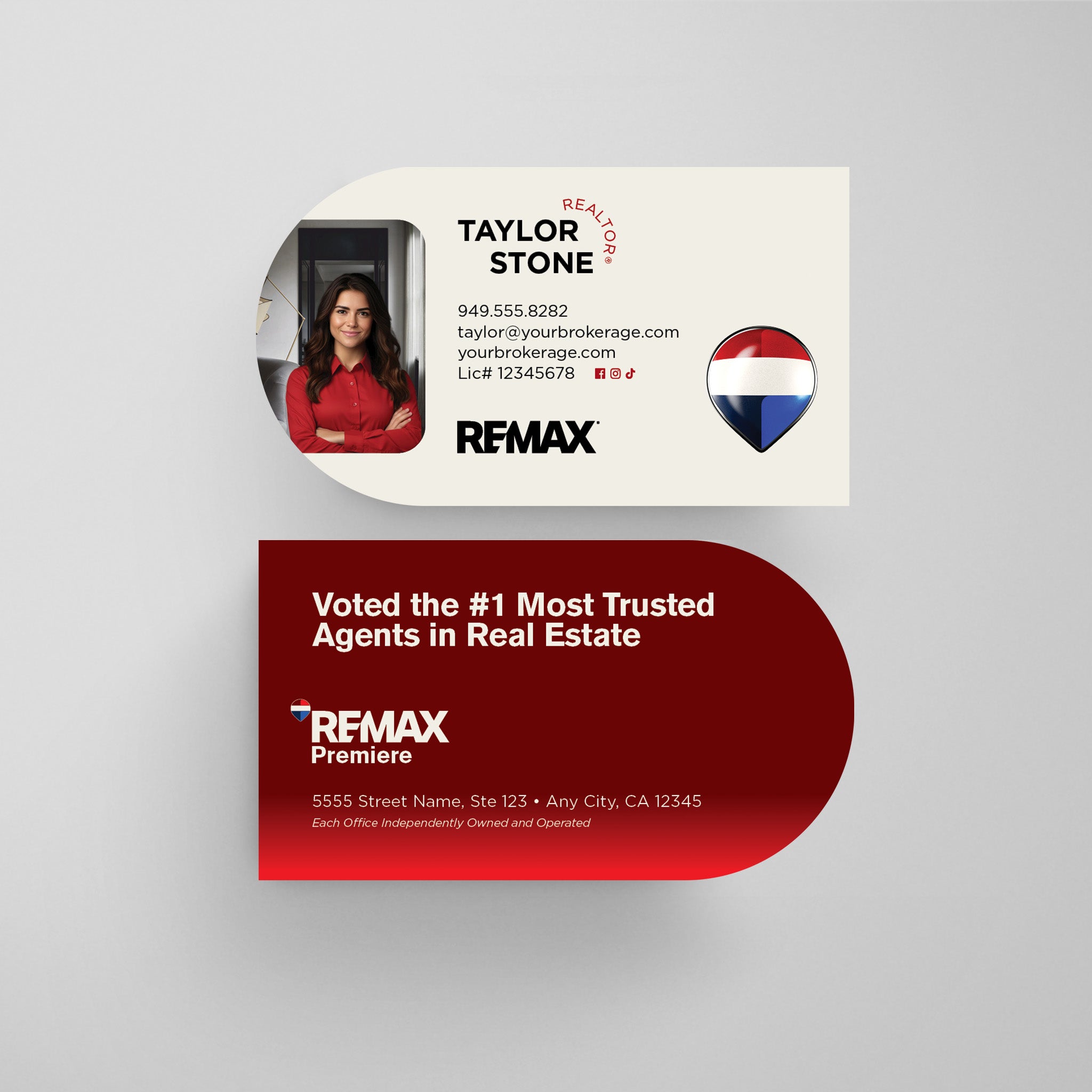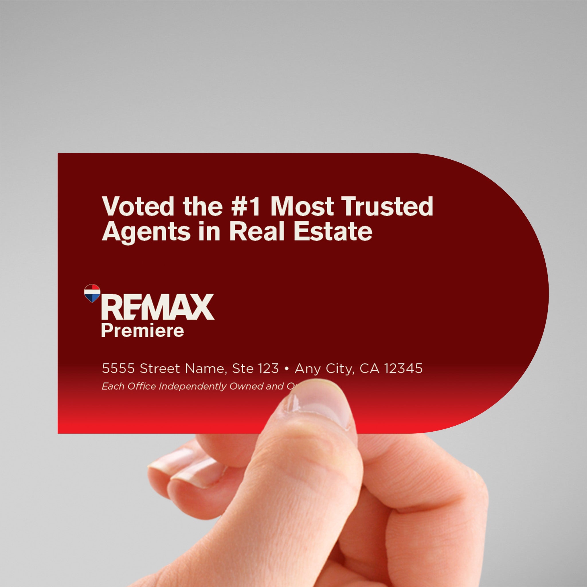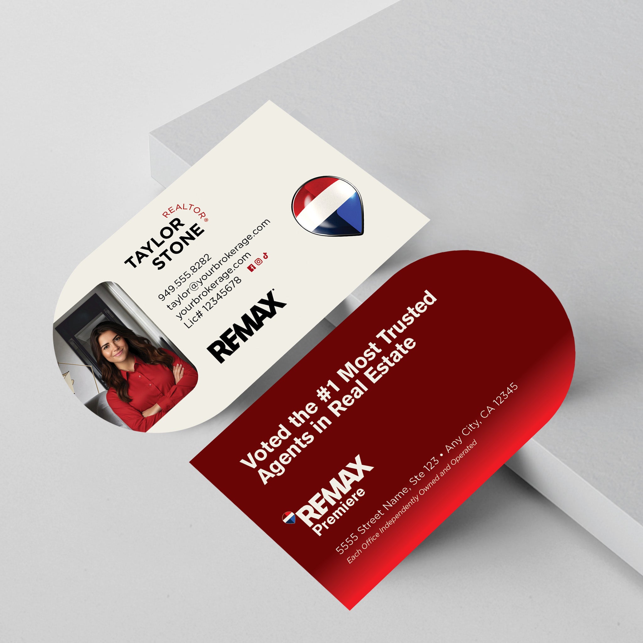 RE/MAX Unique Half Circle Shape Business Cards! Guaranteed to stand out!