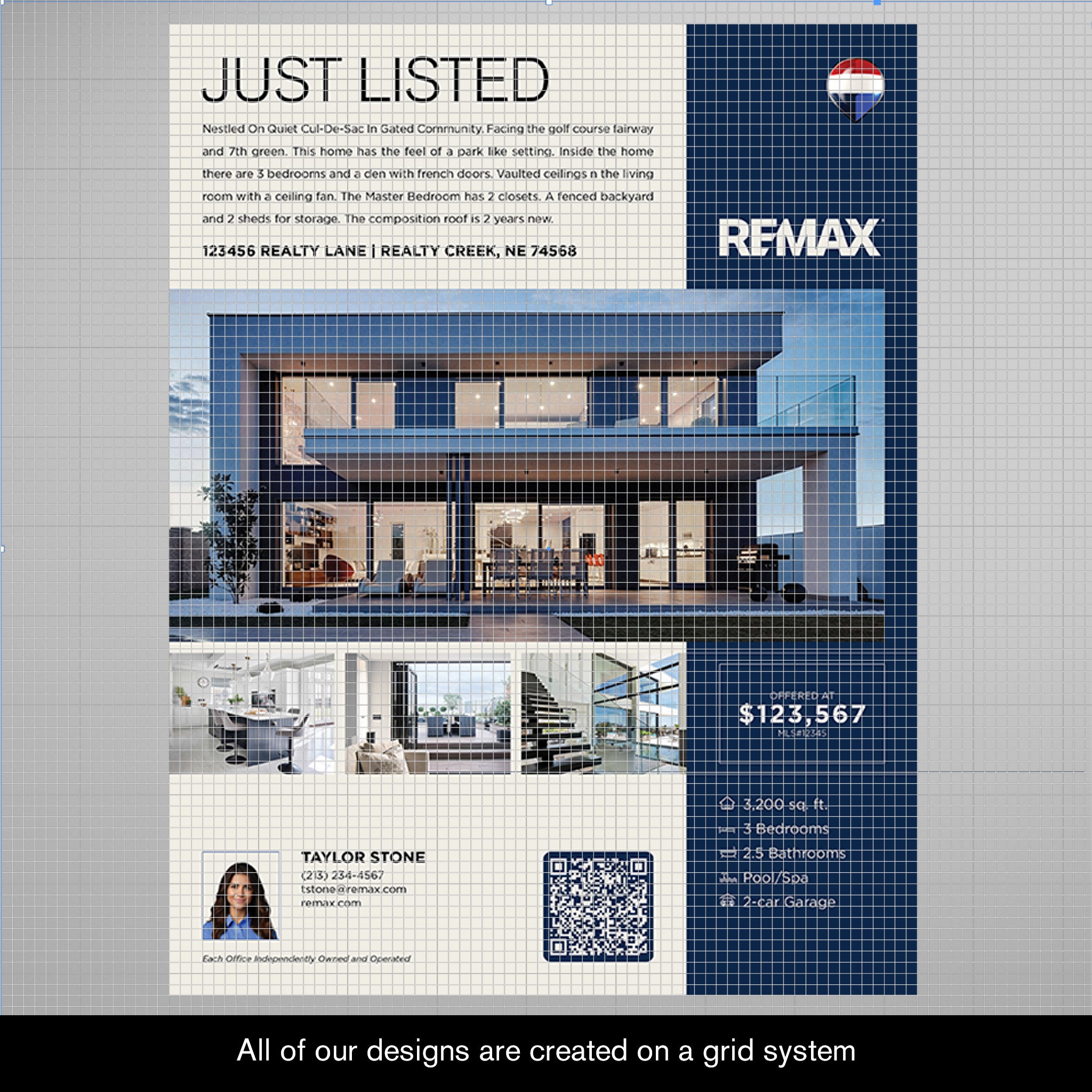 Our designs follow brand guidelines and is created on a grid system to insure balance and professionalism. The design will be sent in PDF format (layers) and can be edited in Canva or Adobe Express.