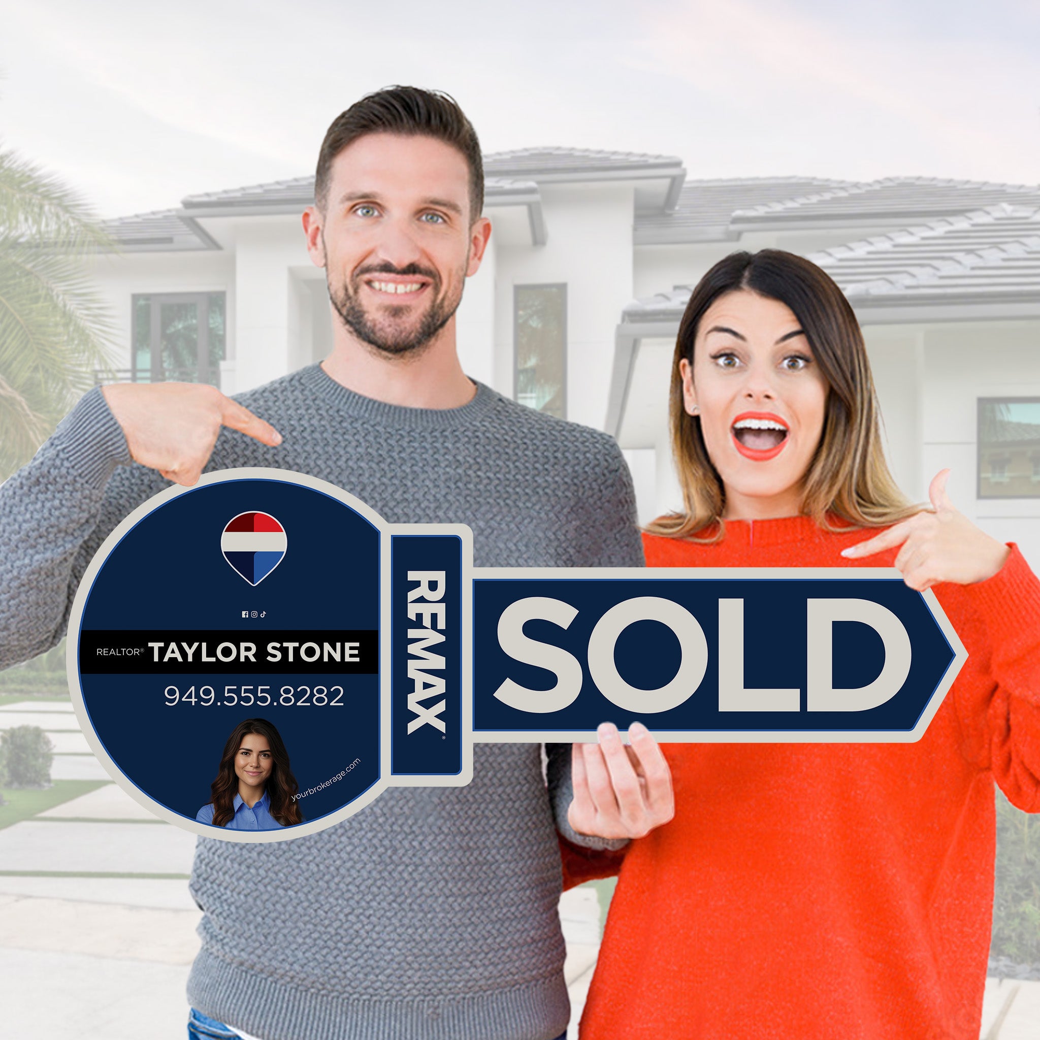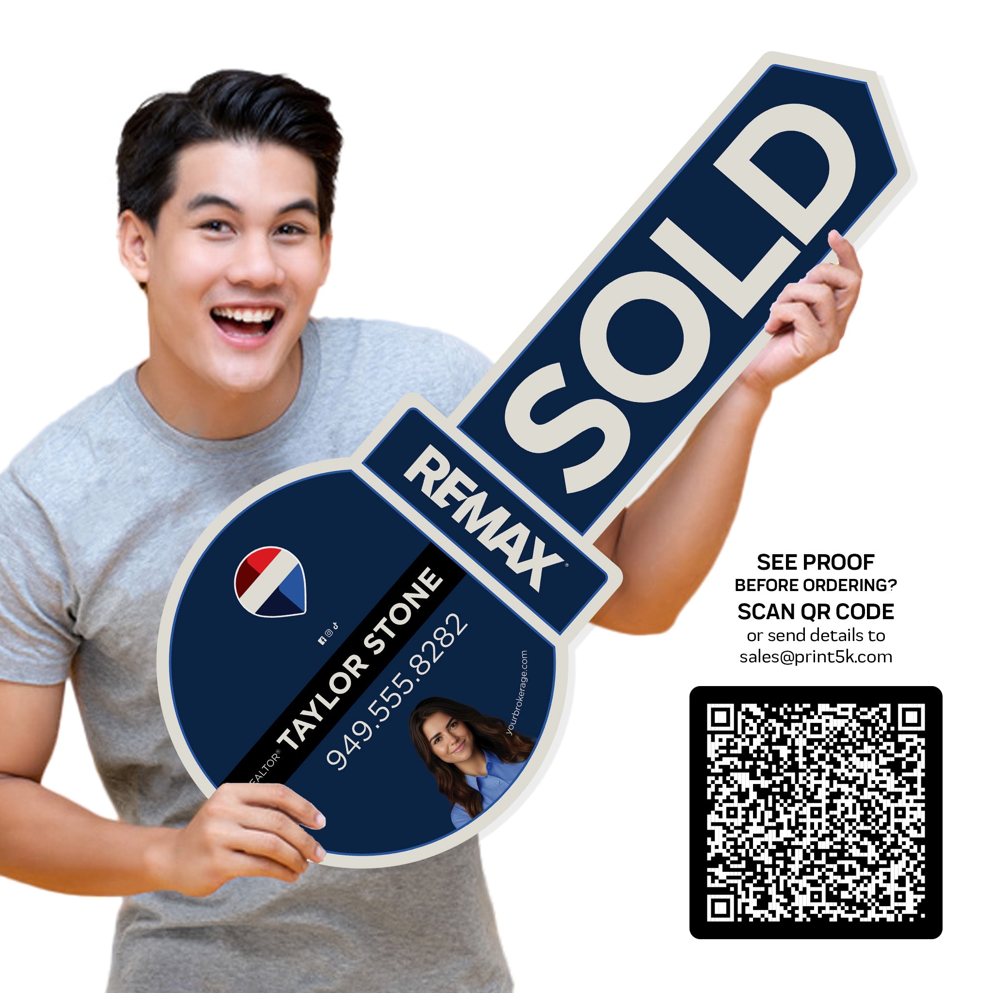 PRINTED SIGN with DESIGN Giant Key Cutouts great for social media marketing! Printed on a multimillion dollar machine! Guaranteed, professional results!Features: FREE Photo Crop FREE Layout/Design FREE Background Removal FREE Photo Retouching and Enhancements Made Entirely in the USA! 3 Size Options: 24x10, 30x12, 36x15 Printed Both Sides White Coroplast...