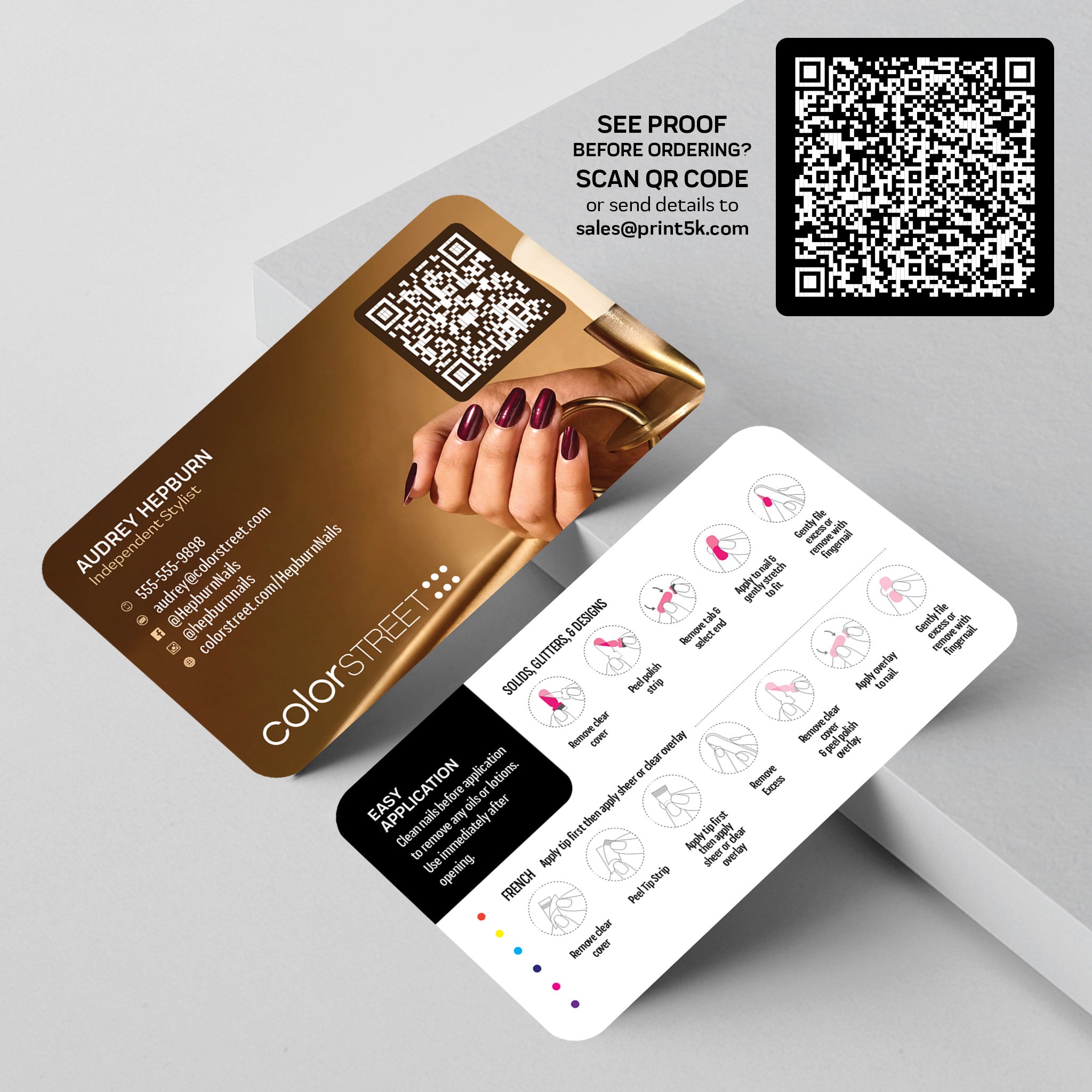 To see a proof before purchase, please send details to sales@print5k.com or scan QR code in picture gallery. A proof will be provided within 24hrs. Thanks.